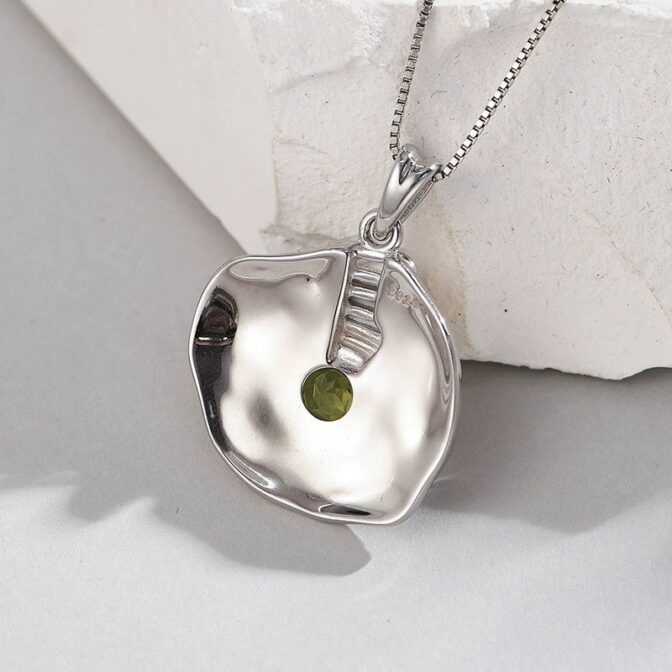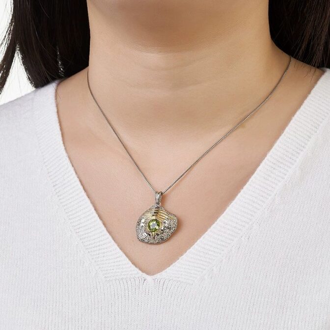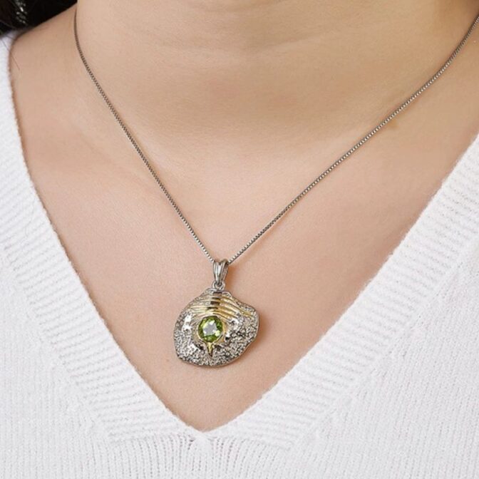 ペリドットのペンダント – ユニークなラインとテクスチャーが特徴 N154