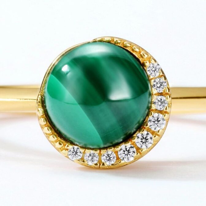 三日月のリング – マラカイトの自然な模様が魅力的 R378
