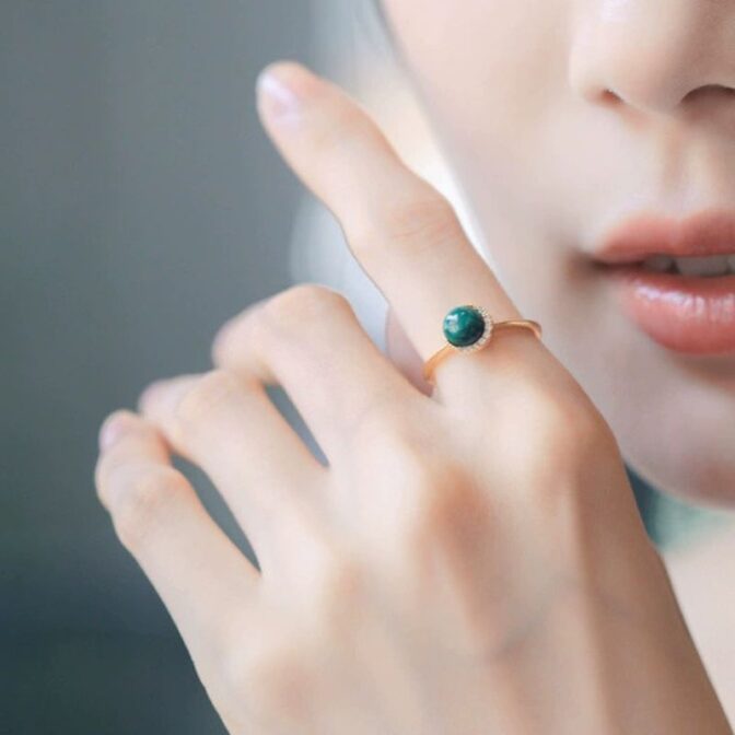 三日月のリングは、夜空に浮かぶ月のように幻想的で、見る人の心を惹きつけます。マラカイトの自然な模様が、輝く三日月と相まって、まるで神秘的な物語を語りかけてくるかのようです。素材の選択肢も豊富で、シルバーやゴールド、プラチナの中からお好みのものをお選びいただけます。あなたの指先に、この特別な輝きをプラスしてみてはいかがでしょうか。