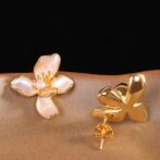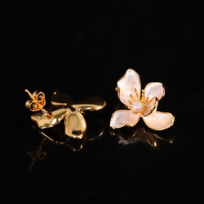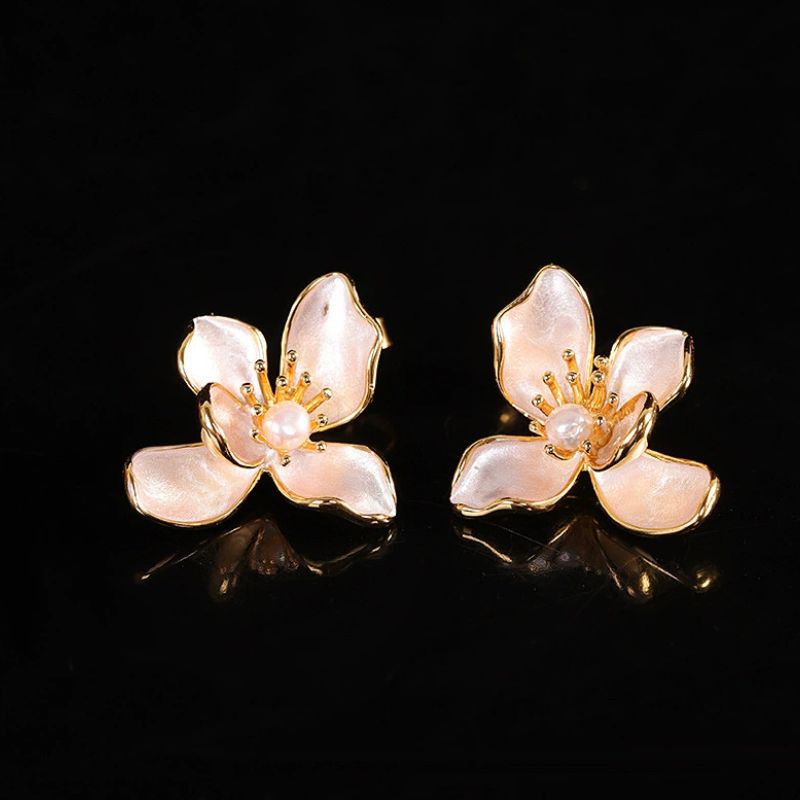 不断桜をテーマにしたピアスは、風に揺れる美しい形をリアルに表現しており、七宝焼きやパールの装飾が施された上品なアクセサリーです。パールは不断桜の中央に配置され、咲き誇る花の中心で輝く朝露のように見えます。このアクセサリーは、自然界の儚さと永遠の美を映し出し、身につける人に特別な瞬間を刻むことでしょう。風に揺れる桜の花びらのように、身につけるたびに優雅に揺らめき、見る人の心を惹きつけます。