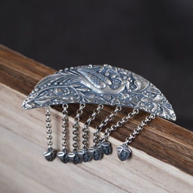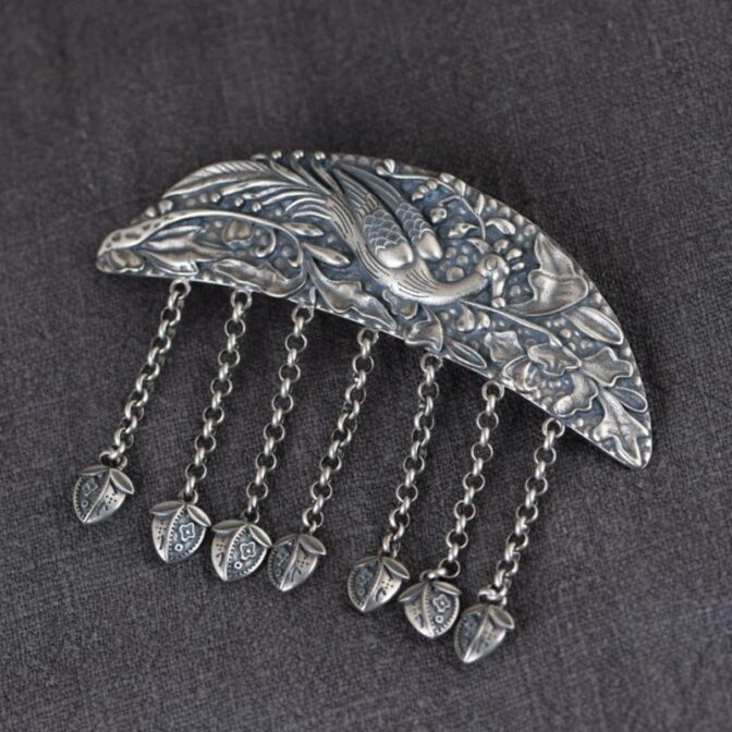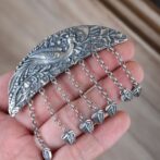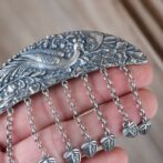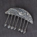 孔雀のシルバーバレッタ – 特別な日に輝く美しい髪飾りK102