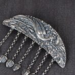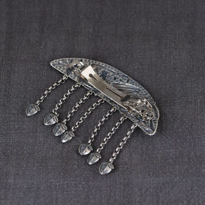 <受注制作>孔雀のシルバーバレッタ – 特別な日に輝く美しい髪飾りK102