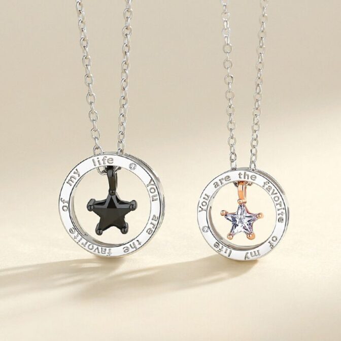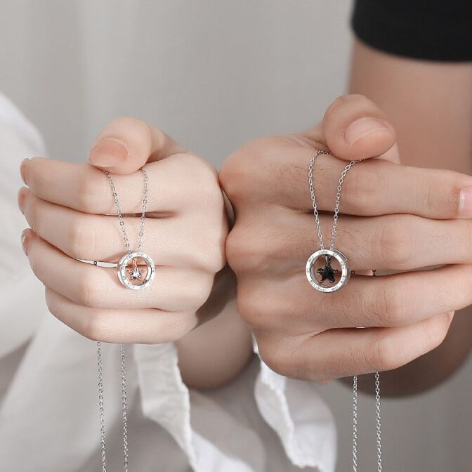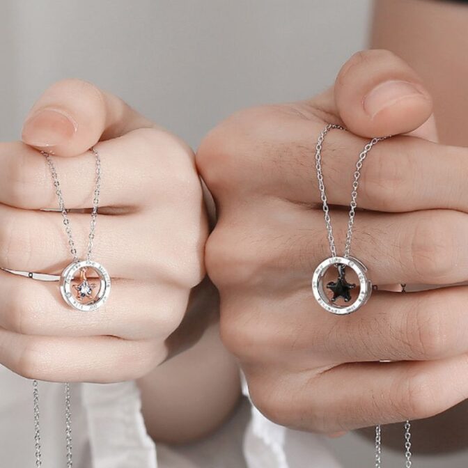 星をモチーフしたペアネックレスは、恋人同士や親子など、大切な人との絆を象徴するアイテムです。星の意味は、様々な文化や信仰において、光や希望、幸運などの象徴とされています。また、星は天体としても美しく、人々を魅了してきました。