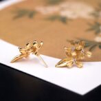 木犀をモチーフにしたピアスは、小さくて可愛い花びらが特徴的、耳元で揺れるたびに優雅な香りが漂ってくるような気がします。このピアスを身につけると、まるで秋の庭にいるかのような気分に包まれるでしょう。シンプルで洗練されたデザインは、どんなスタイルにもぴったり合う魅力があります。また、友人や家族へのプレゼントとしても最適で、贈る人のセンスを感じさせる一品です。