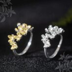 木犀をテーマにしたリングには、金木犀バージョンと銀木犀バージョンの2種類をご用意しています。お好みに合わせてお選びいただけます。どちらのバージョンも、繊細なデザインと優雅な輝きが特徴で、特別な日の贈り物や自分へのご褒美に最適です。