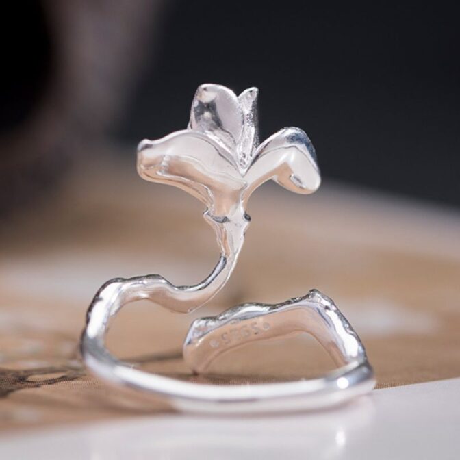 このリングは、その美しい花の形状を忠実に再現しています。スターリングシルバーを使用しているため、高級感があり、指にフィットするデザインが特徴です。ハクモクレンの美しさを身につけたい方には、ぴったりのリングです。