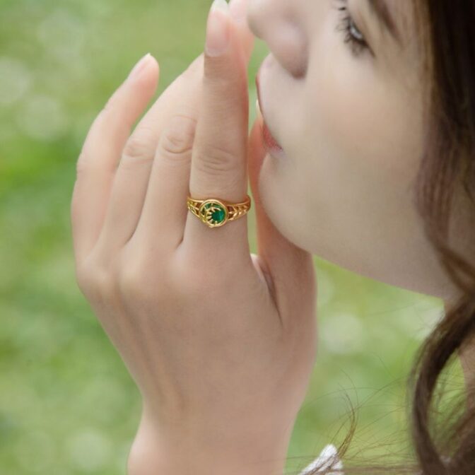 柳の葉のリングは、自然の美しさを手元に感じさせてくれる一品です。緑のマラカイトの石が、落ち着きと調和をもたらし、柳の葉の繊細な模様が優雅さを加えています。日常使いにも特別な日のアクセサリーとしてもぴったりで、どんなスタイルにも自然に溶け込みます。このリングを身に着けることで、自然のエネルギーを感じつつ、ファッションに一層の個性を添えることができます。