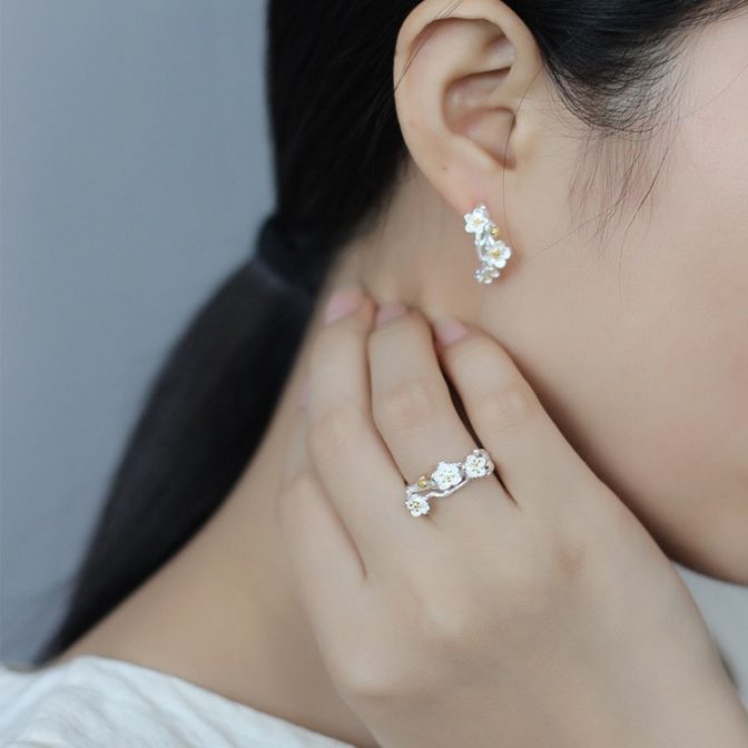 梅の花の美しさを表現するために、リングやペンダントなどのアクササリーにしました。梅の花の特徴を生かし、リアルに制作しました。