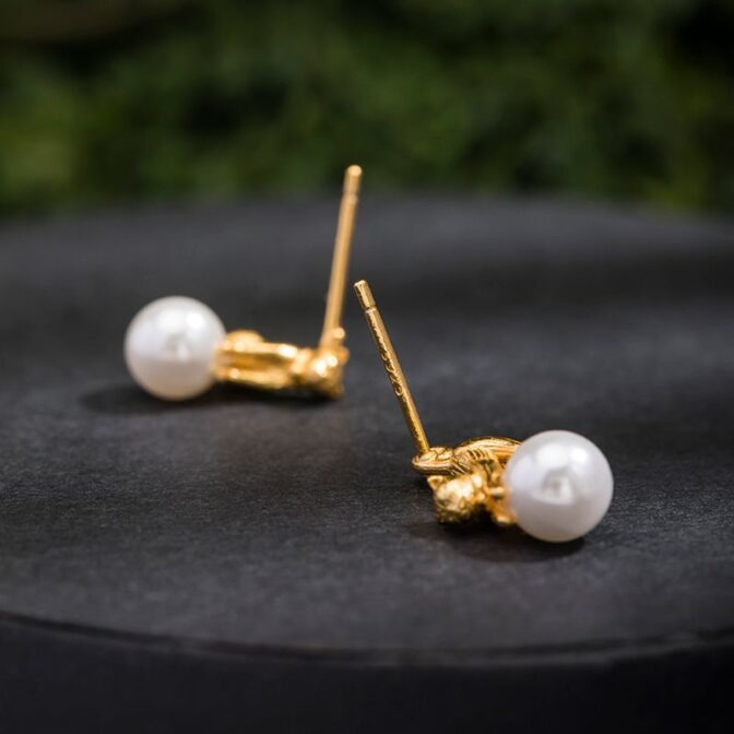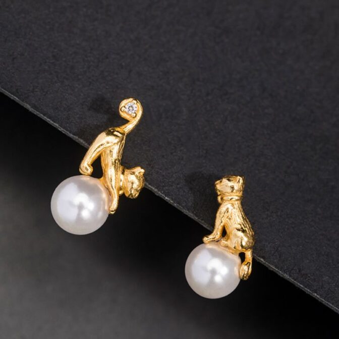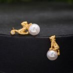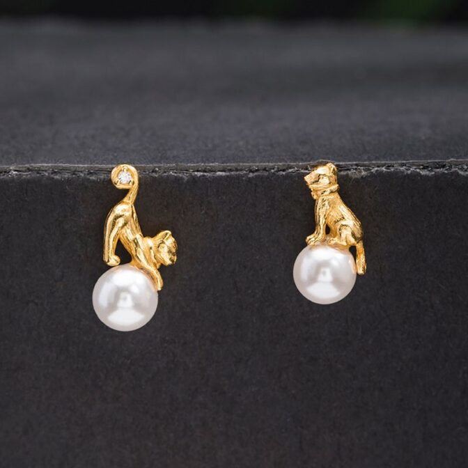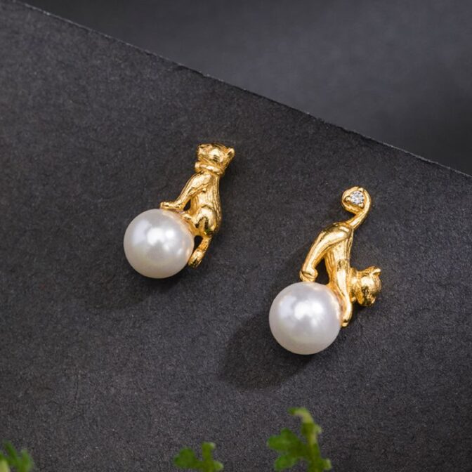 猫がボールで遊んでいる姿をリアルに表現したアシンメトリーのピアスです。ピアスは細部にこだわり、猫のしなやかな動きや遊び心が見事に表現されています。猫の優雅な姿とパールの上品な輝きが絶妙に調和し、どんなシーンでも目を引くこと間違いありません。このアクセサリーは、日常のカジュアルな装いにも、特別な日のドレスアップにもぴったりです。自分へのご褒美として、あるいは大切な人への特別な贈り物としても喜ばれることでしょう。