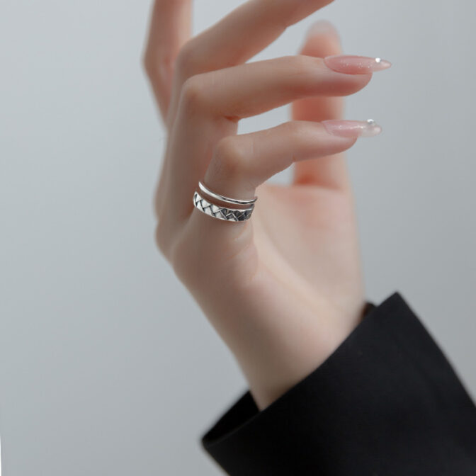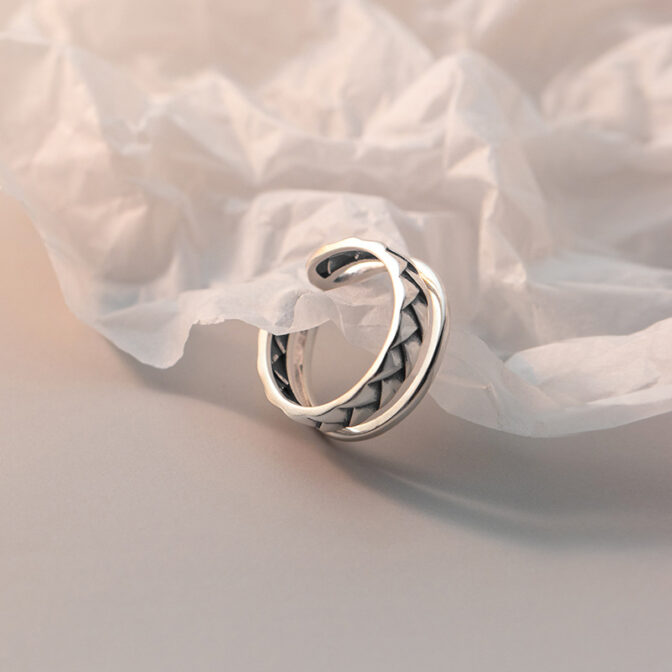 このピンキーリングは、繊細な編み模様と磨きのコンビネーションで、上品で美しい印象を与えます。