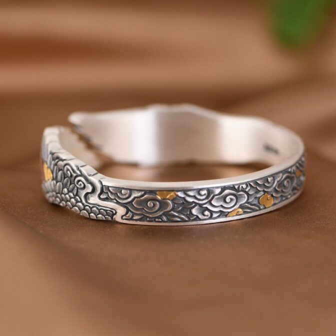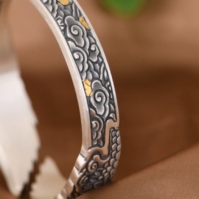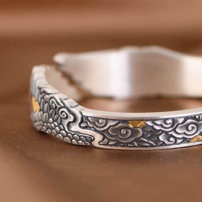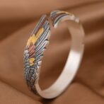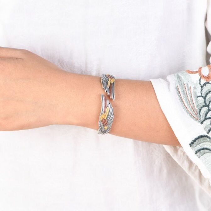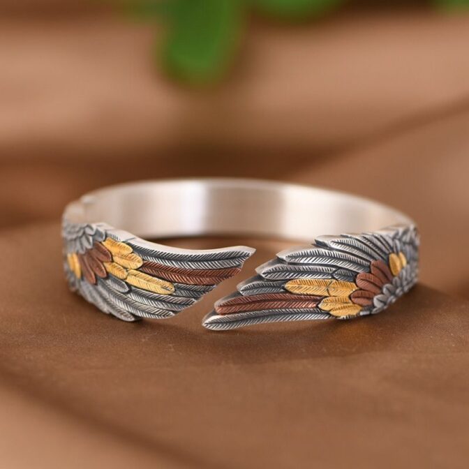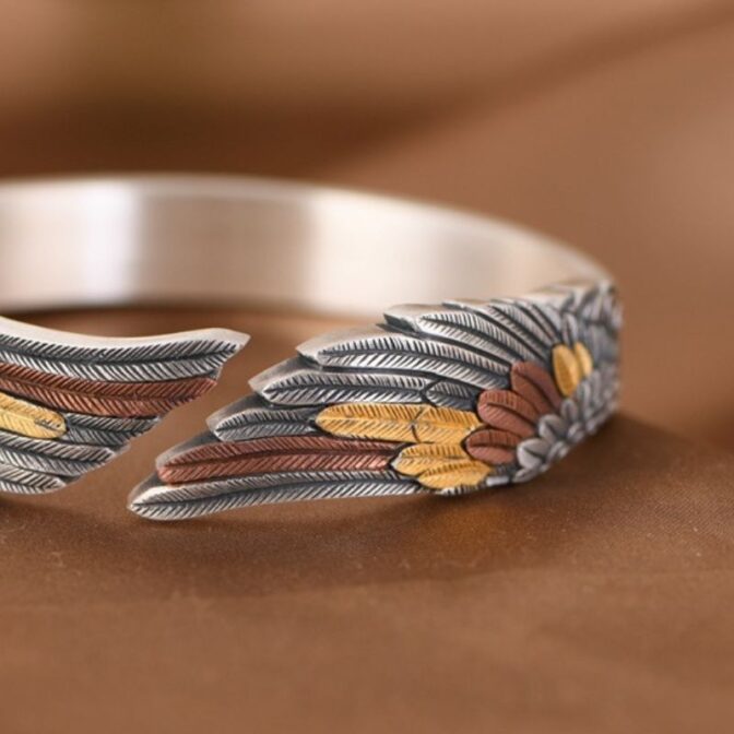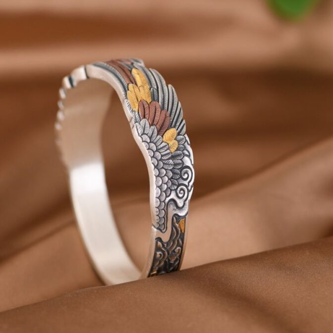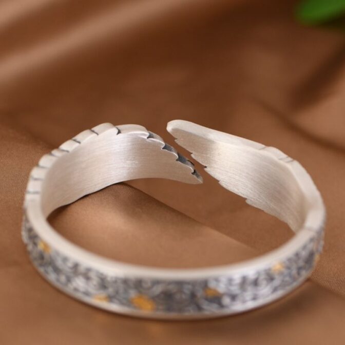 羽モチーフのバングル – 細かな彫刻を施した豪華な純銀アクセサリーB059