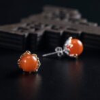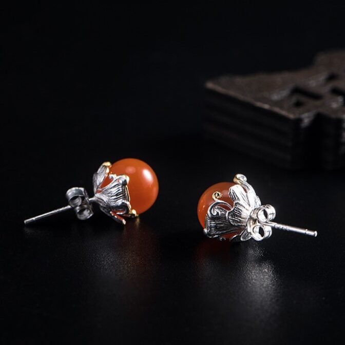 <受注制作>花のピアス 花 瑪瑙 シルバー P011