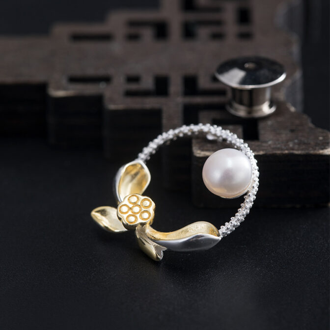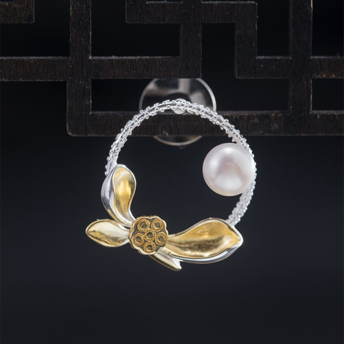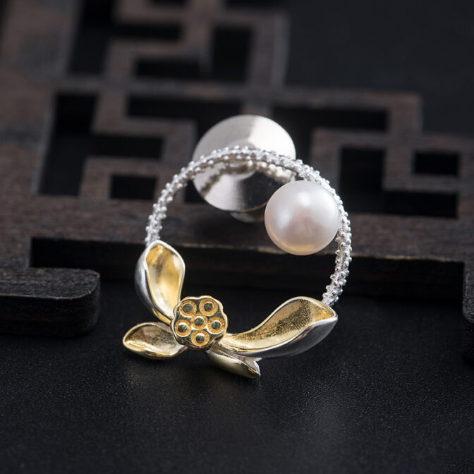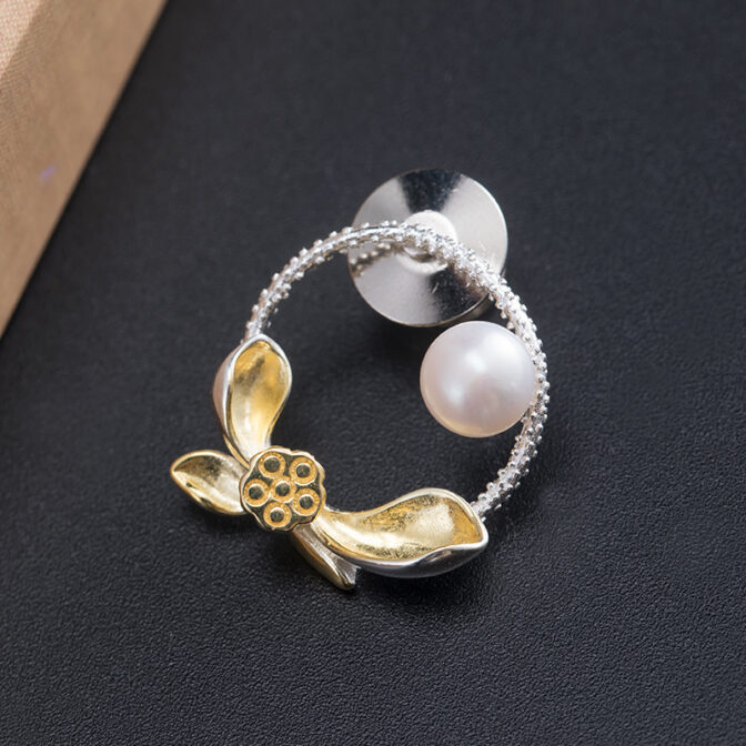 オリジナルアクセサリーシルバーブローチ淡水パール蓮(ハス)蓮の花