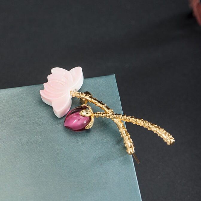 オリジナルアクセサリーシルバーブローチシェル(蝶貝)蓮(ハス)