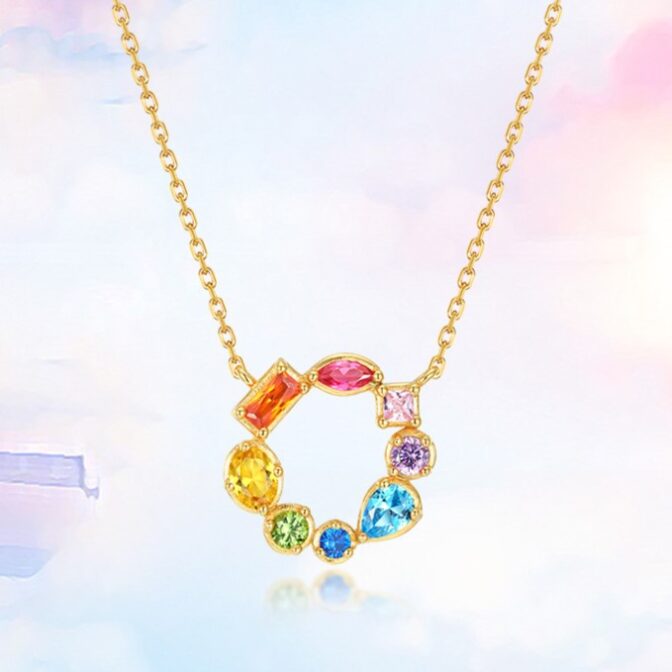 虹色の宝石ペンダント – 華やかな印象と幸せな気持ちを与える0655