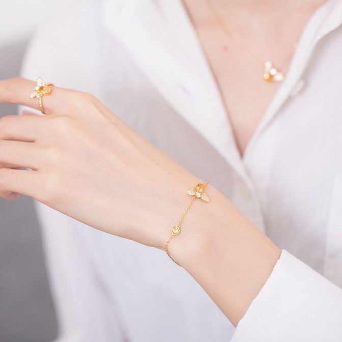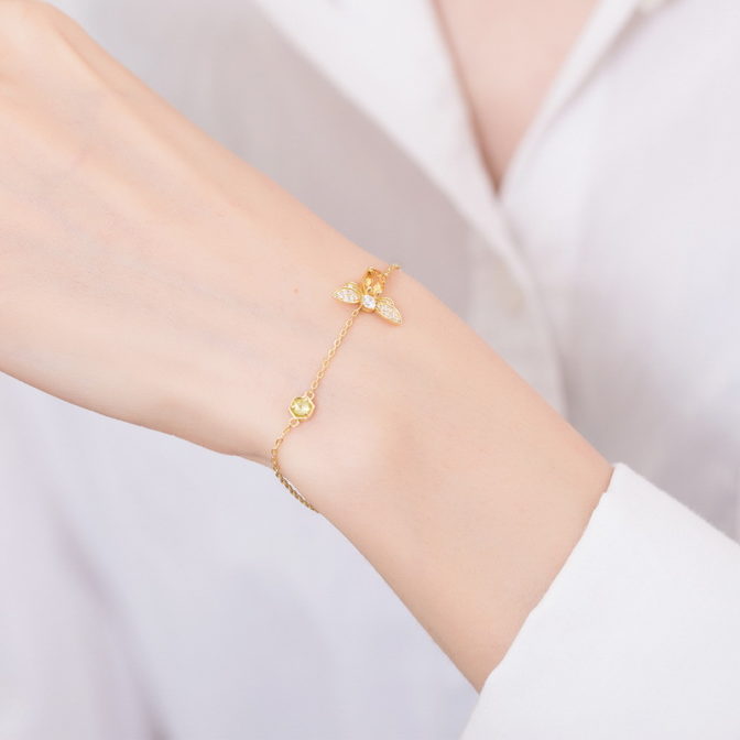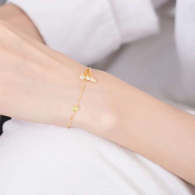 オリジナルアクセサリーシルバーブレスレットシトリン蜜蜂(ミツバチ)