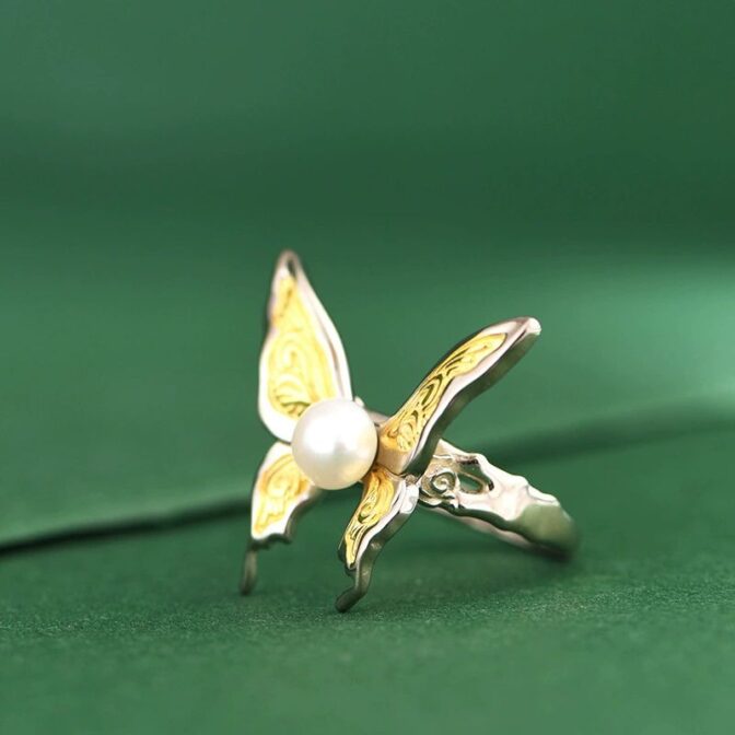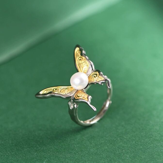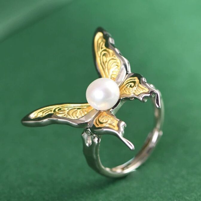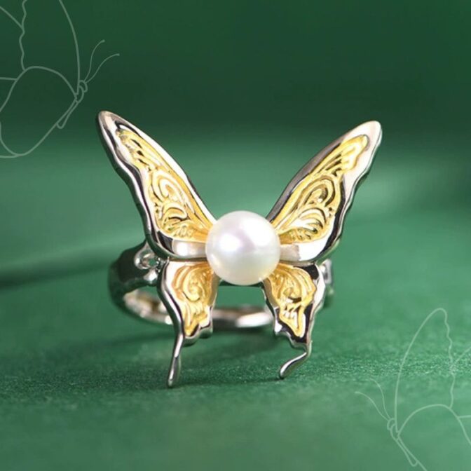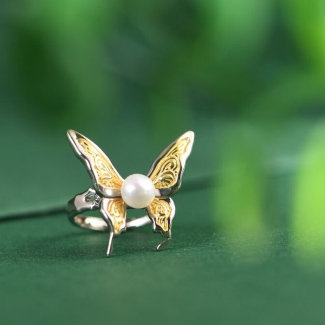 蝶々のリング – パールの柔らかな輝きが優雅さを加え R366