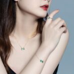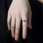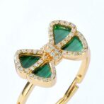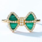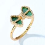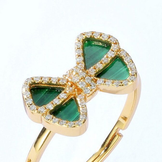 女性らしさを引き立てる蝶々モチーフのリングは、輝きを放つ宝石が散りばめられた翅が美しいデザインです。また、マラカイトを使用したアクセサリーは、美しい緑色が特徴の癒しの象徴です。