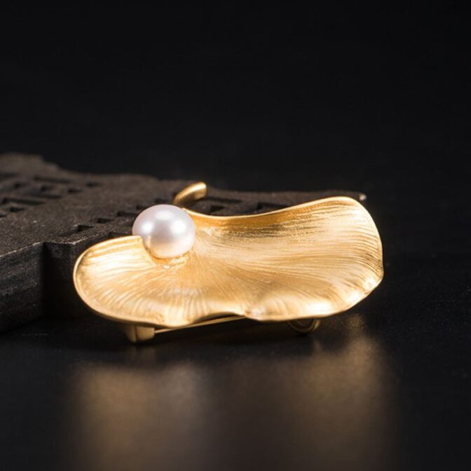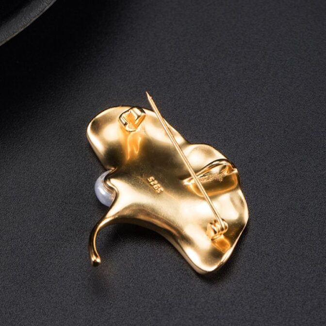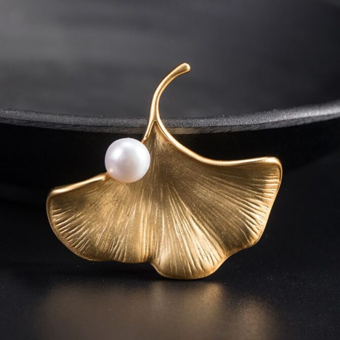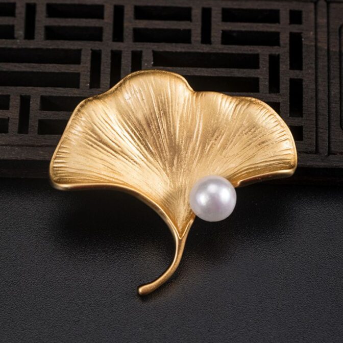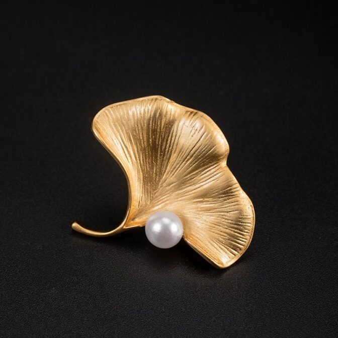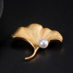 金色の銀杏葉ブローチ – 華やかなアクセントでおしゃれを演出C035
