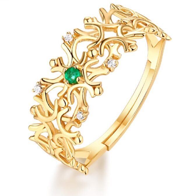 雪の結晶とエメラルドが輝く上品なリング-幅広い層の方におすすめ0654