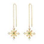雪の結晶と輝くエメラルドの美しさが冬の季節を彩るピアス0652