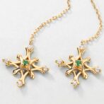 雪の結晶とエメラルドの相性は抜群で、品のある装いを演出できます。シンプルなデザインなので、どんなコーディネートにも合わせやすく、普段使いからパーティーまで幅広く活躍してくれます。