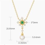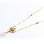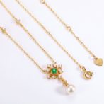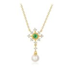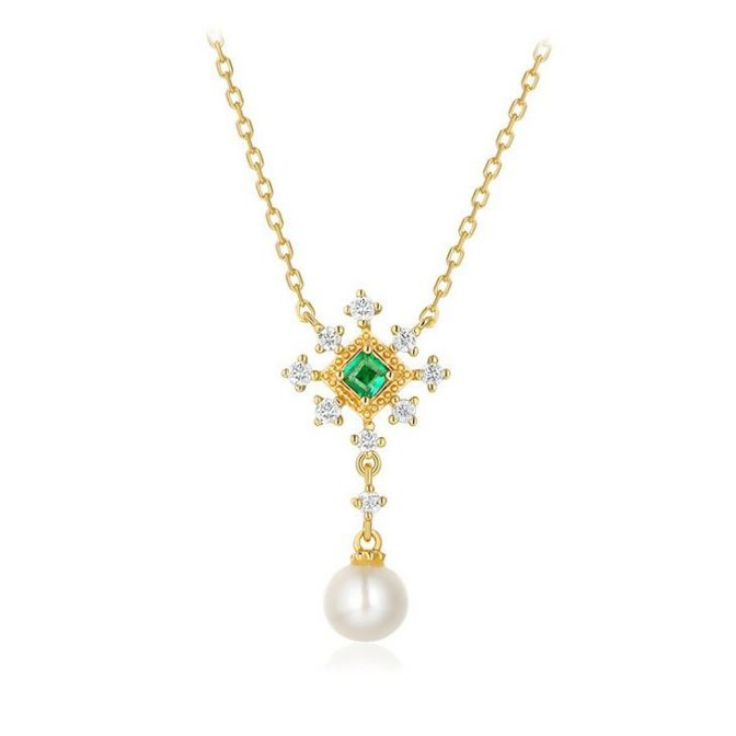 雪の結晶と雲ペンダント 天然エメラルド 淡水パール 0585