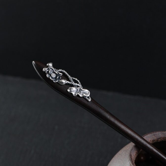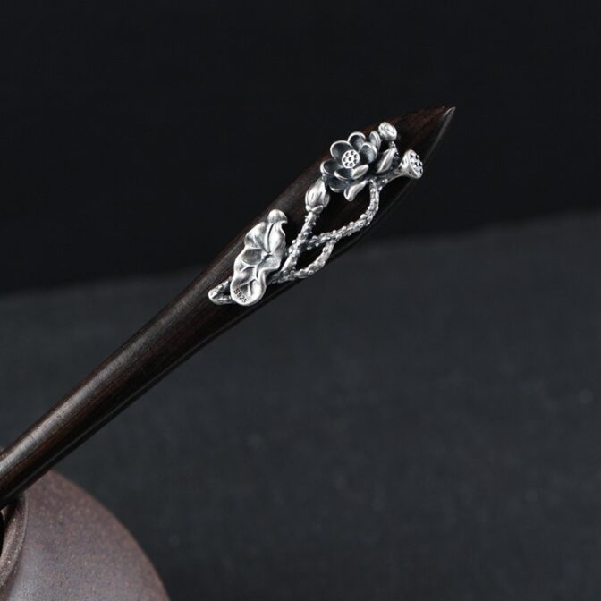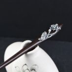 高級黒檀とシルバーの美しいかんざし-特別な日を華やかに K073