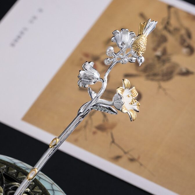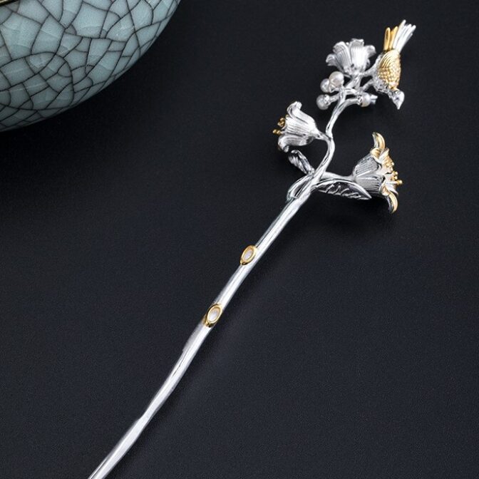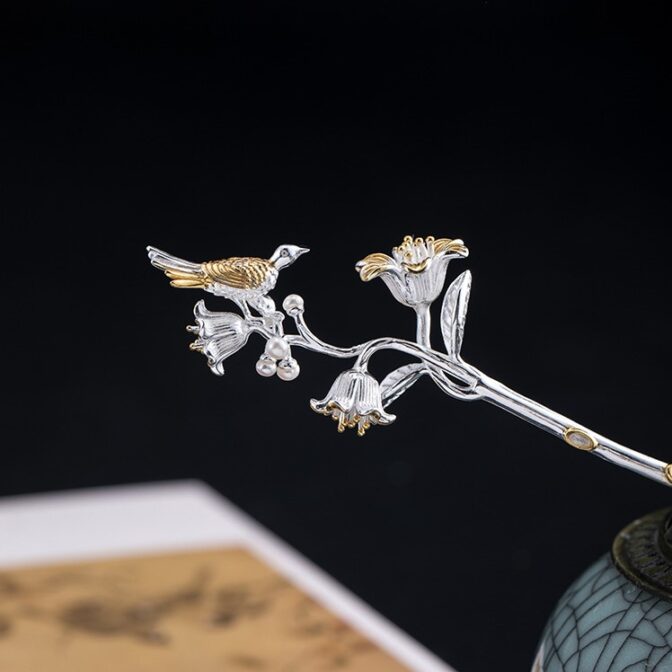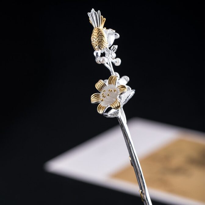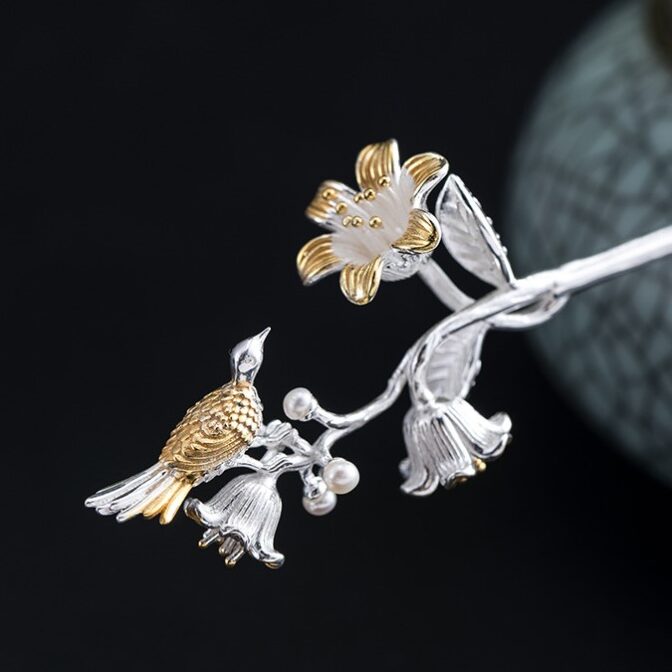 鳥と花のかんざし 簪 とり はな シルバー K015
