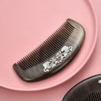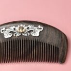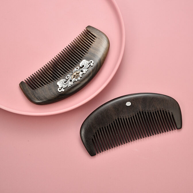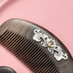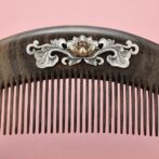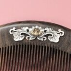 黒檀とスターリングシルバーの美しい蓮の花の櫛 贈り物にぴったり K054