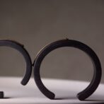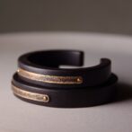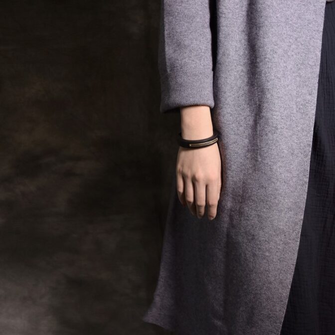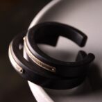 このバングルは、黒檀とテクスチャーを施した黄銅で作り、高級感があります。手首に装着すると、上品でモダンな雰囲気を醸し出し、どんなシーンにもぴったりです。