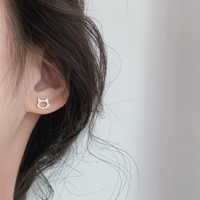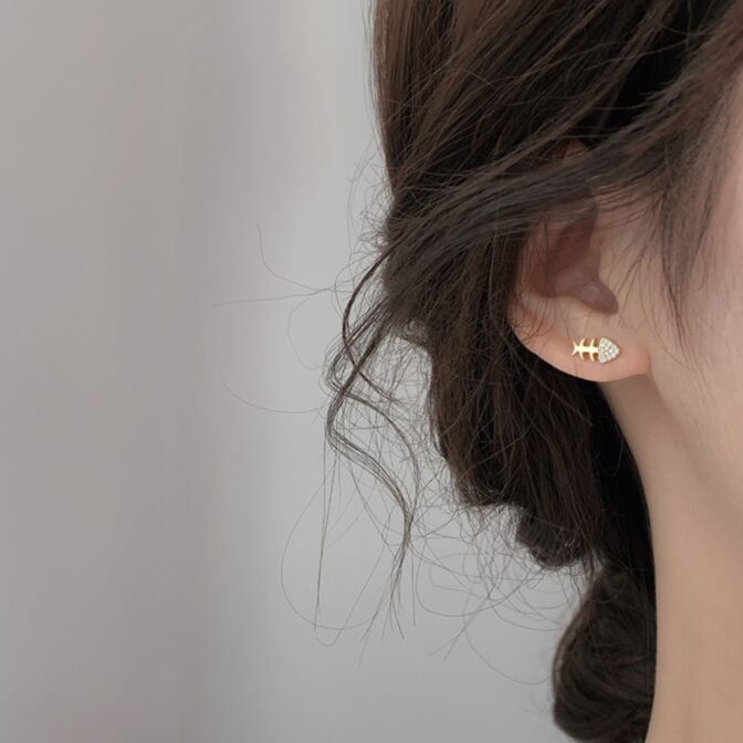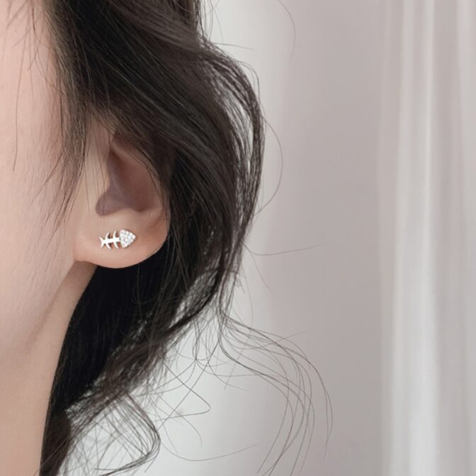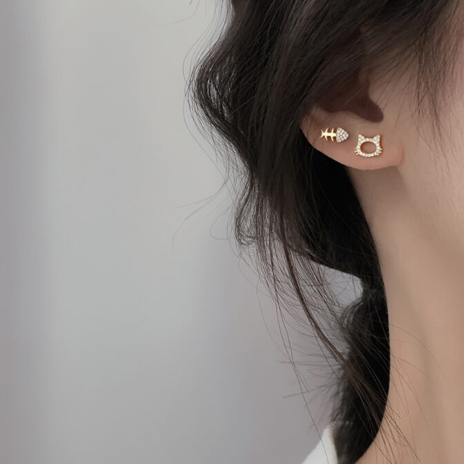 ※ 寸法:猫ちゃんピアス9㎜×6.5㎜ 魚の骨ピアス9㎜×5㎜