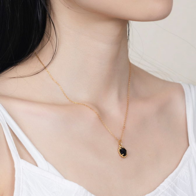 オニキスシリーズを紹介します。天然石のオニキスとイエローゴールドのコンビネーションにより、上品できれいです。是非ご覧ください。