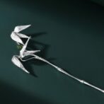 竹をテーマにしたかんざしで、竹の葉がリアルに製作しており、まるで風に揺れているかのようです。その繊細なデザインは、職人の巧みな技術と美意識を感じさせます。かんざしを差すことで、髪に自然の美しさが宿り、見る人を魅了することでしょう。竹の節や葉の色合いもリアルに再現されており、和の伝統と現代の感性が見事に調和しています。普段使いにも、特別な日の装いにもぴったりで、このかんざしを身に着けることで、自分自身の個性を引き立てることができるでしょう。どんな場面でも、自然の息吹を感じさせる一品です。